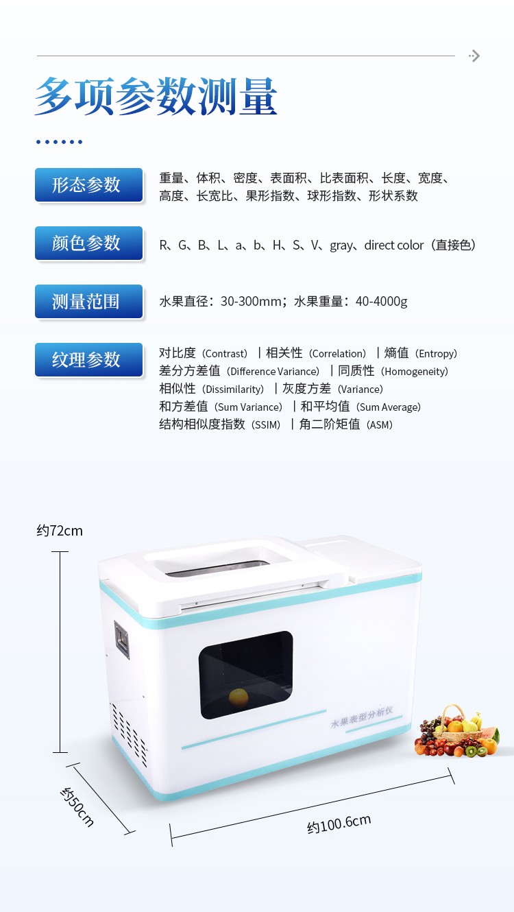 1、适用于荔枝、桃子、苹果、柚子、哈密瓜、西瓜等水果的指标分析;
